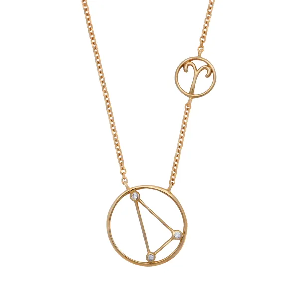 925 ασημένιο γυναικείο κολιέ επιχρυσωμένο με το σύμβολο του ΚΡΙΟΥ του ζωδιακού κύκλου και ζιργκόν