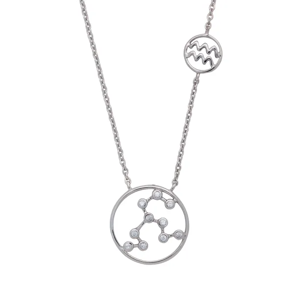 925 ασημένιο επιπλατινωμένο γυναικείο κολιέ με το συμβολο του ΥΔΡΟΧΟΟΥ του ζωδιακού κύκλου και ζιργκόν