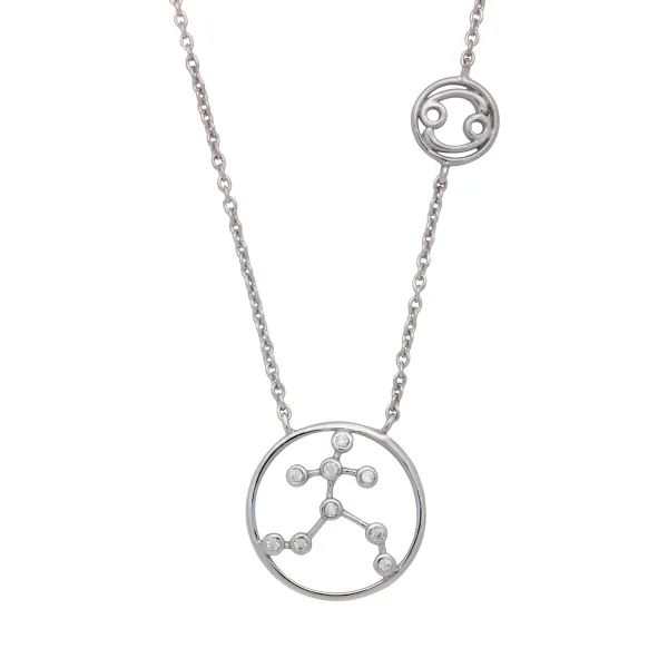 925 ασημένιο επιπλατινωμένο γυναικείο κολιέ με το συμβολο του ΚΑΡΚΙΝΟΥ του ζωδιακού κύκλου και ζιργκόν