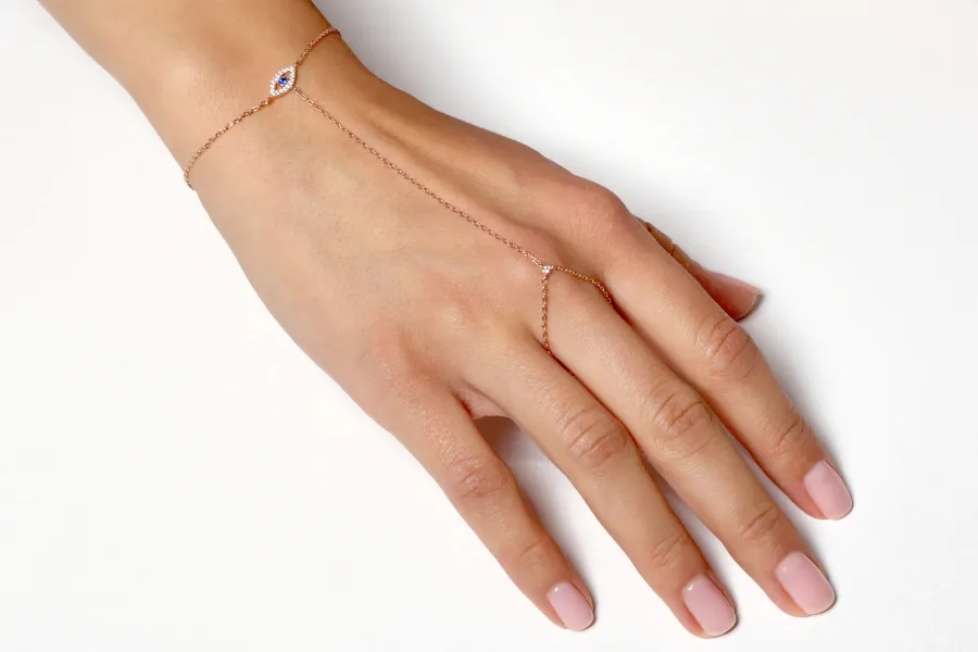 925 ασημένιο γυναικείο βραχιόλι με δαχτυλίδι,ματι,με ροζ χρυσό και ζιργκόν.