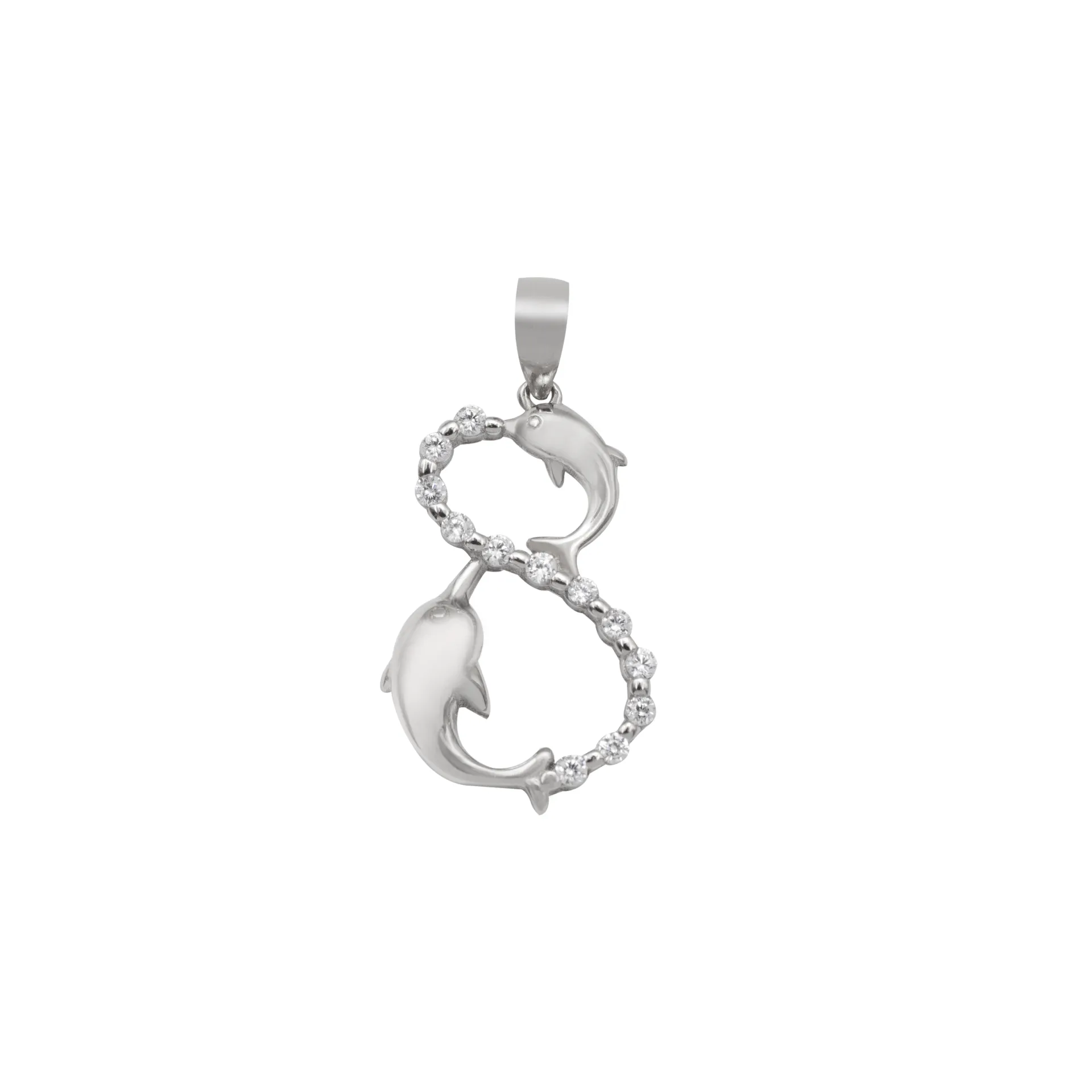 silverline, ασημένιο, γυναικείο, μενταγιόν, ζιργκόν, δελφίνι, άπειρο, άσπρο, επιπλατίνωμα,