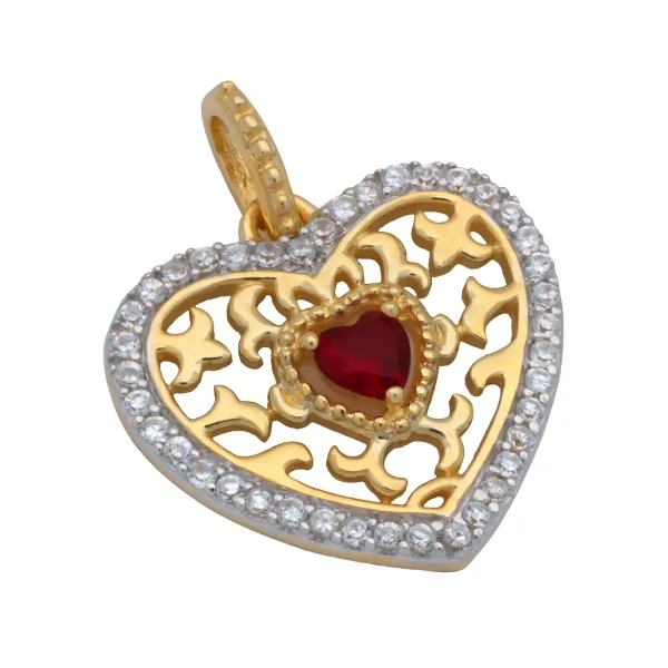 925 ασημένιο γυναικείο μενταγιόν καρδιά επιπλατινωμένο χωρίς νικέλιο με ζιργκόν και επιχρύσωμα