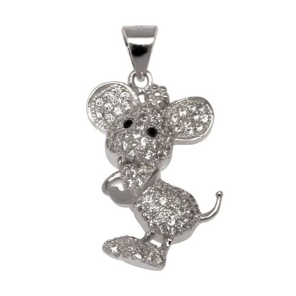 925 ασημένιο γυναικείο μενταγιόν, “ποντίκι”, επιπλατινωμένο, χωρίς νικέλιο με ζιργκόν.