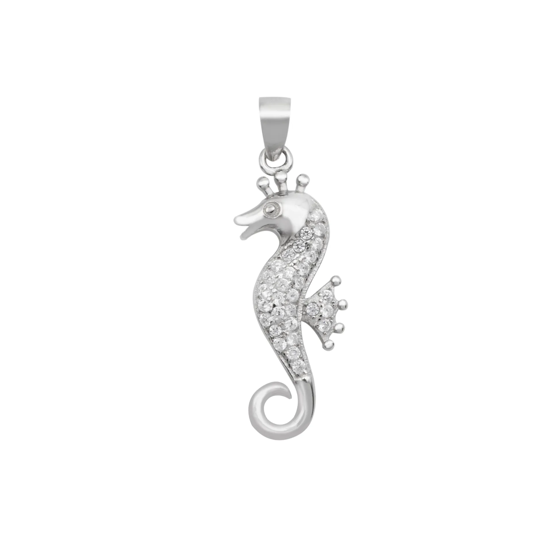 silverline, ασημένιο, γυναικείο, μενταγιόν με ζιργκόν, ιππόκαμπο και άσπρο, επιπλατίνωμα,