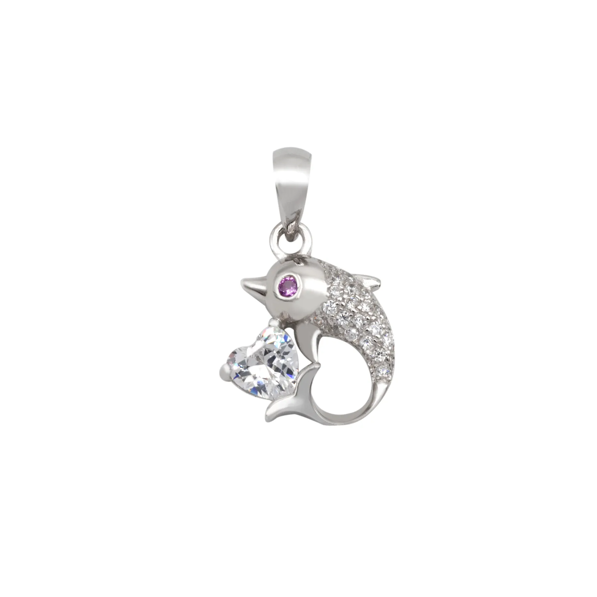 silverline, ασημένιο, γυναικείο, μενταγιόν με λευκά & ροζ ζιργκόν, δελφίνι, άσπρο, επιπλατίνωμα,