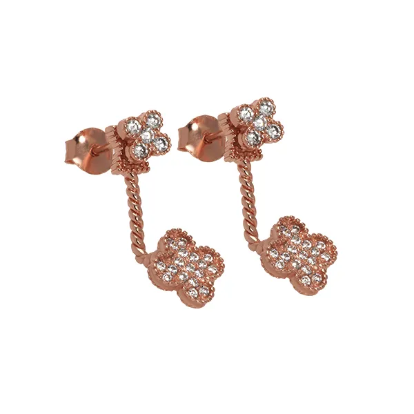 925 ασημένια γυναικεία σκουλαρίκια, με ροζ χρυσό και ζιργκόν.