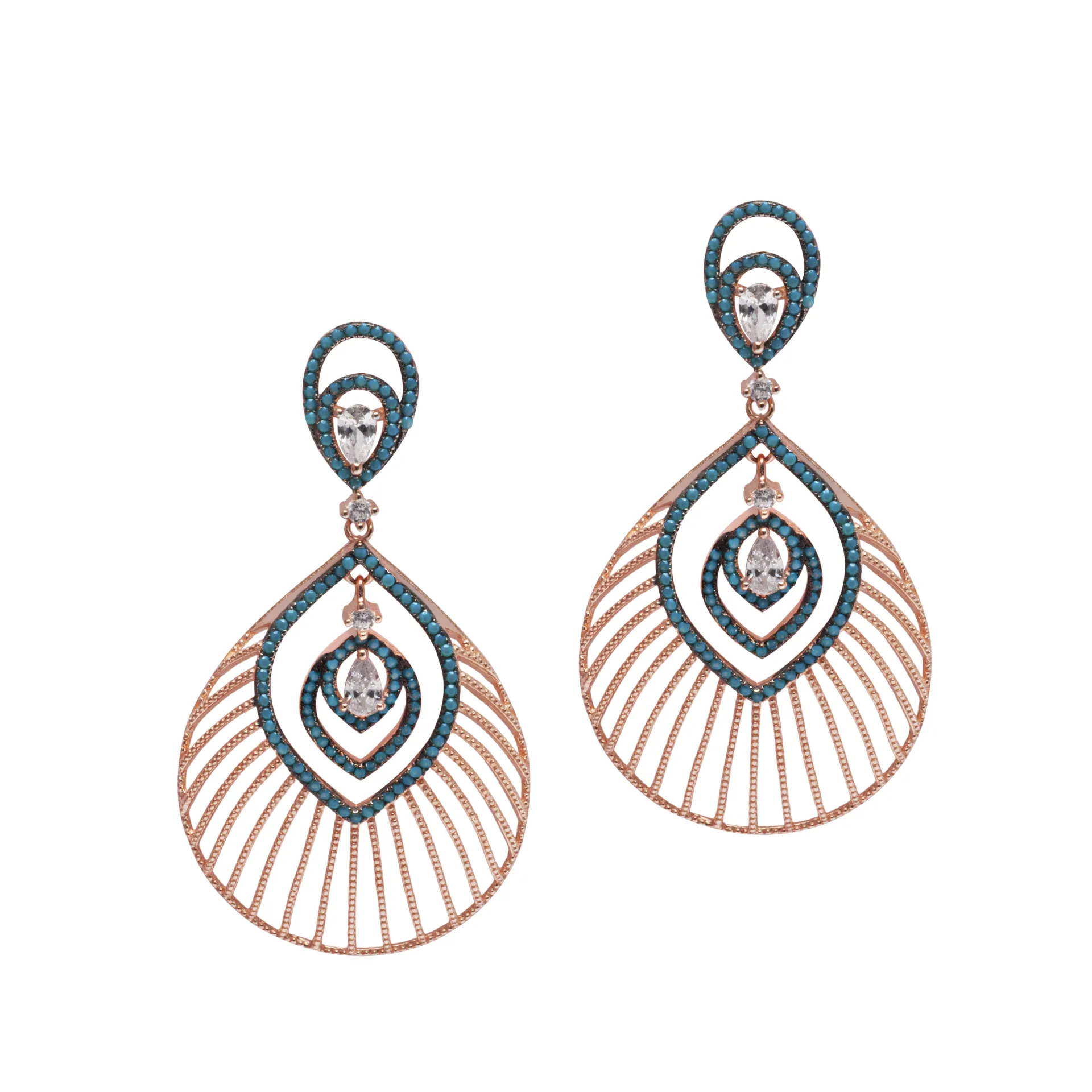 silverline, Ασημένιο Γυναικεία Σκουλαρίκια με νάνο τυρκουάζ και ζιργκόν