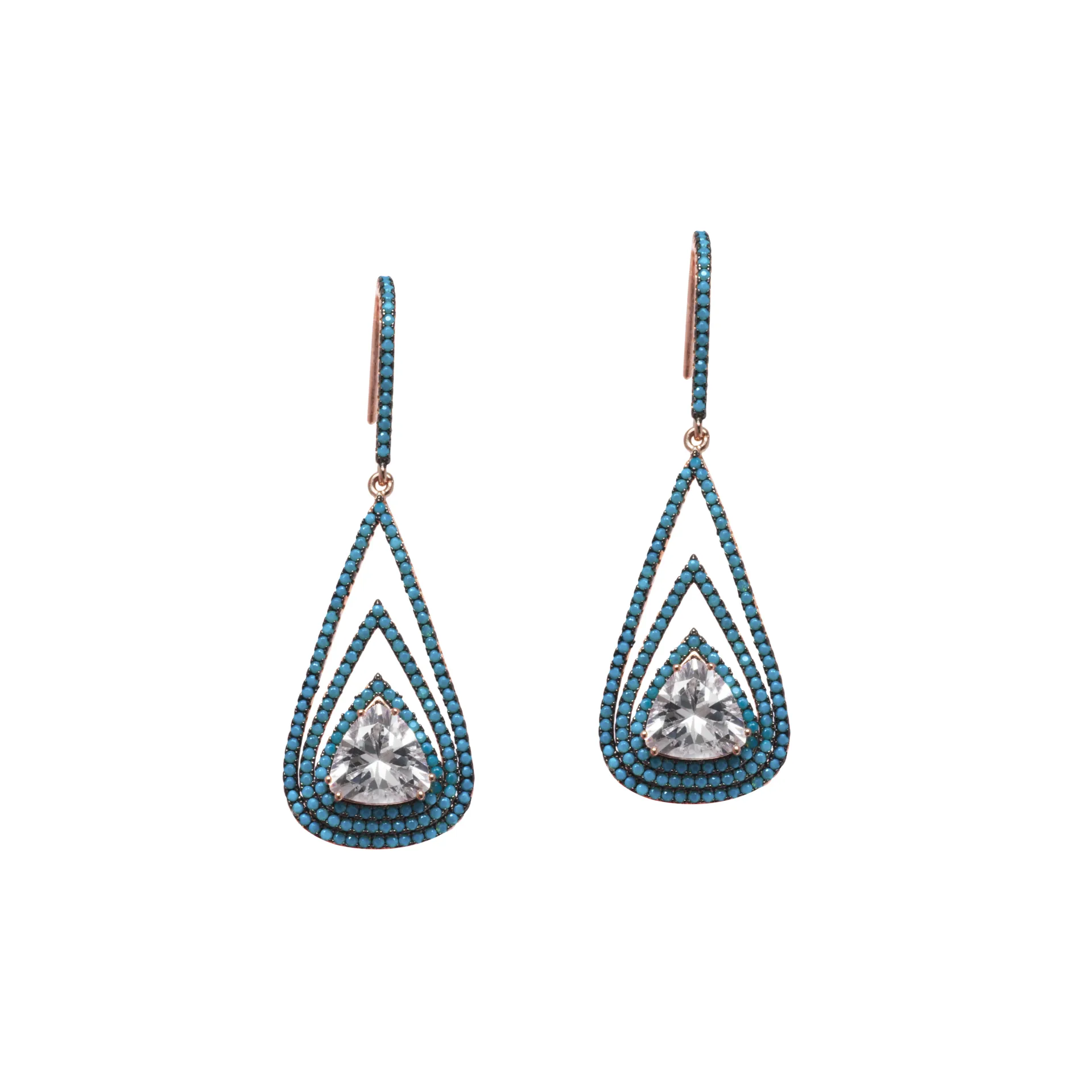 silverline, Ασημένιο Γυναικεία Σκουλαρίκια με νάνο τυρκουάζ και ζιργκόν