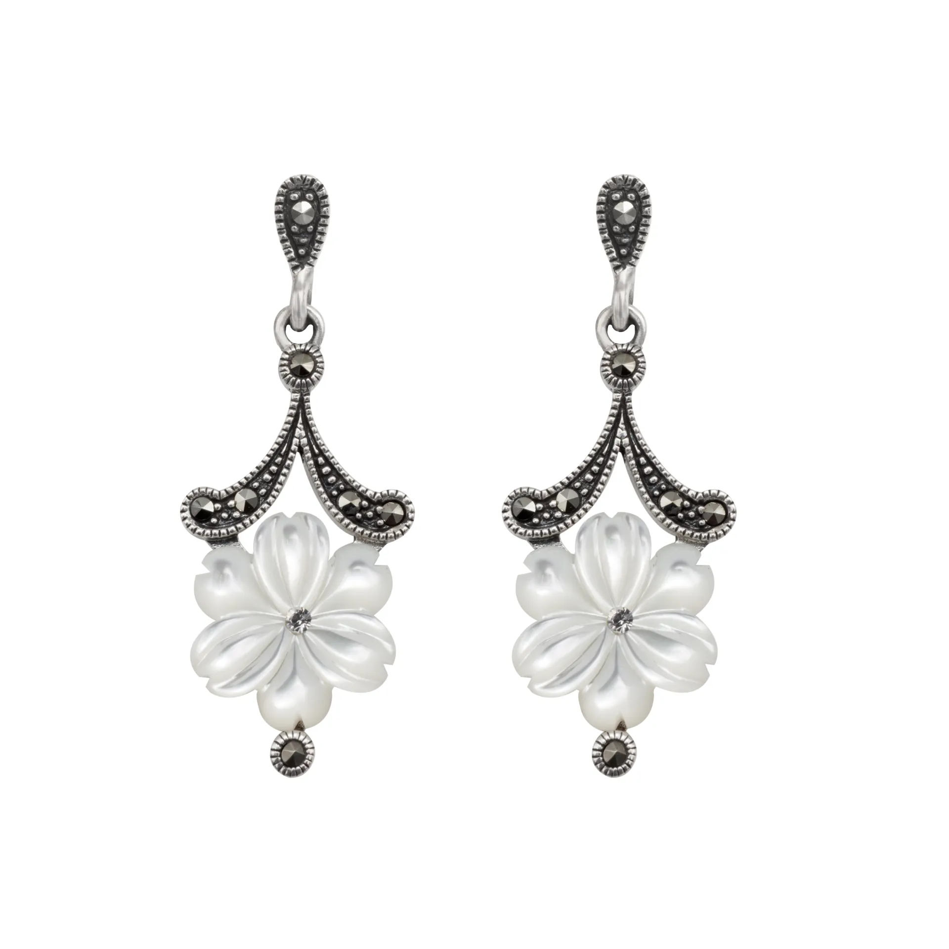silverline, ασημένια, γυναικεία, σκουλαρίκια, με ορυκτές πέτρες μαρκασίτη & φίλντισι