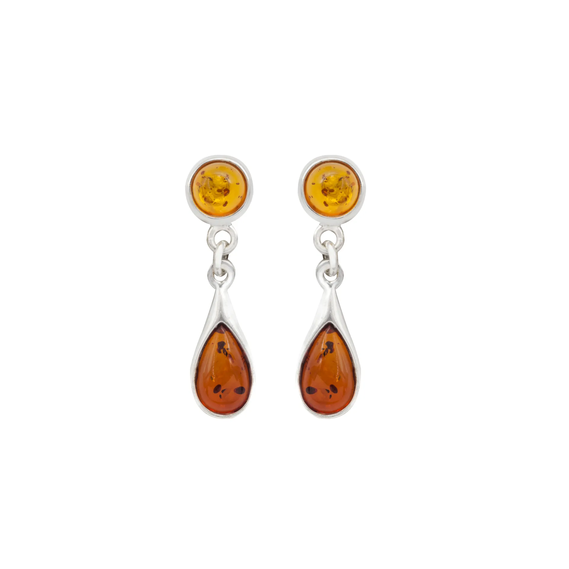 Σκουλαρίκια με κεχριμπάρι, ασημένια, γυναικεία, 2,7cm μήκος, silverline