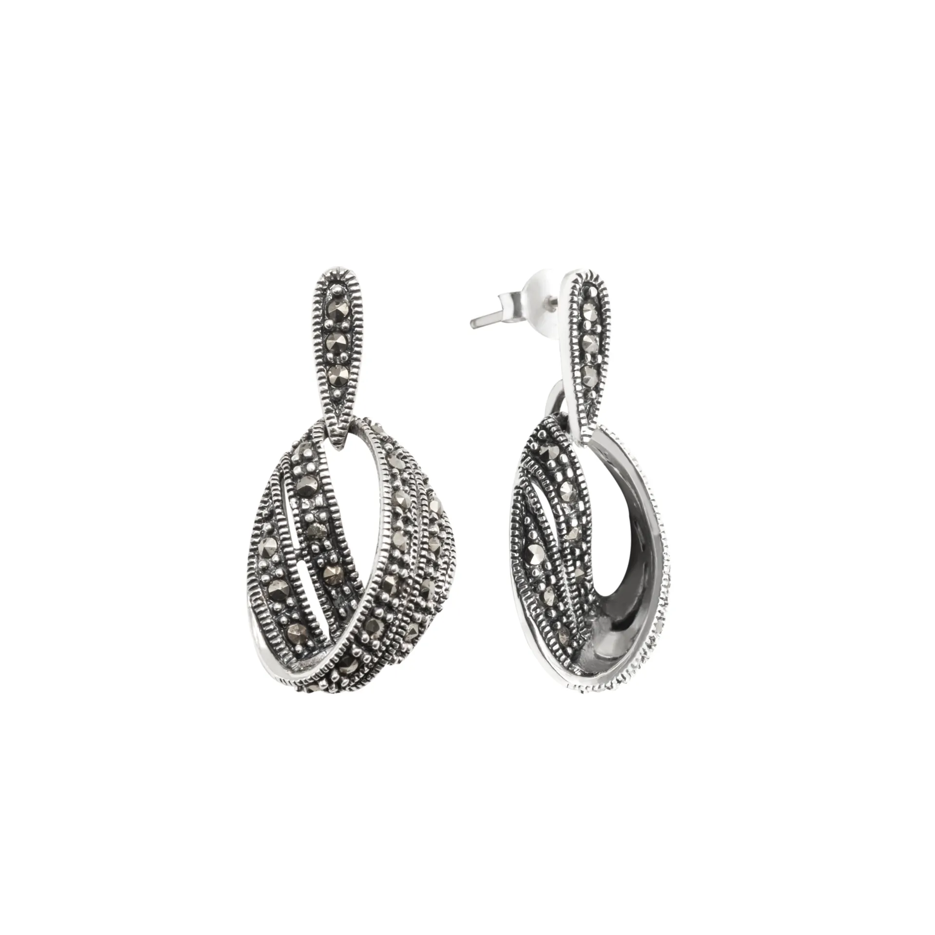 silverline, ασημένια, γυναικεία, σκουλαρίκια με ορυκτές, πέτρες, μαρκασίτη,
