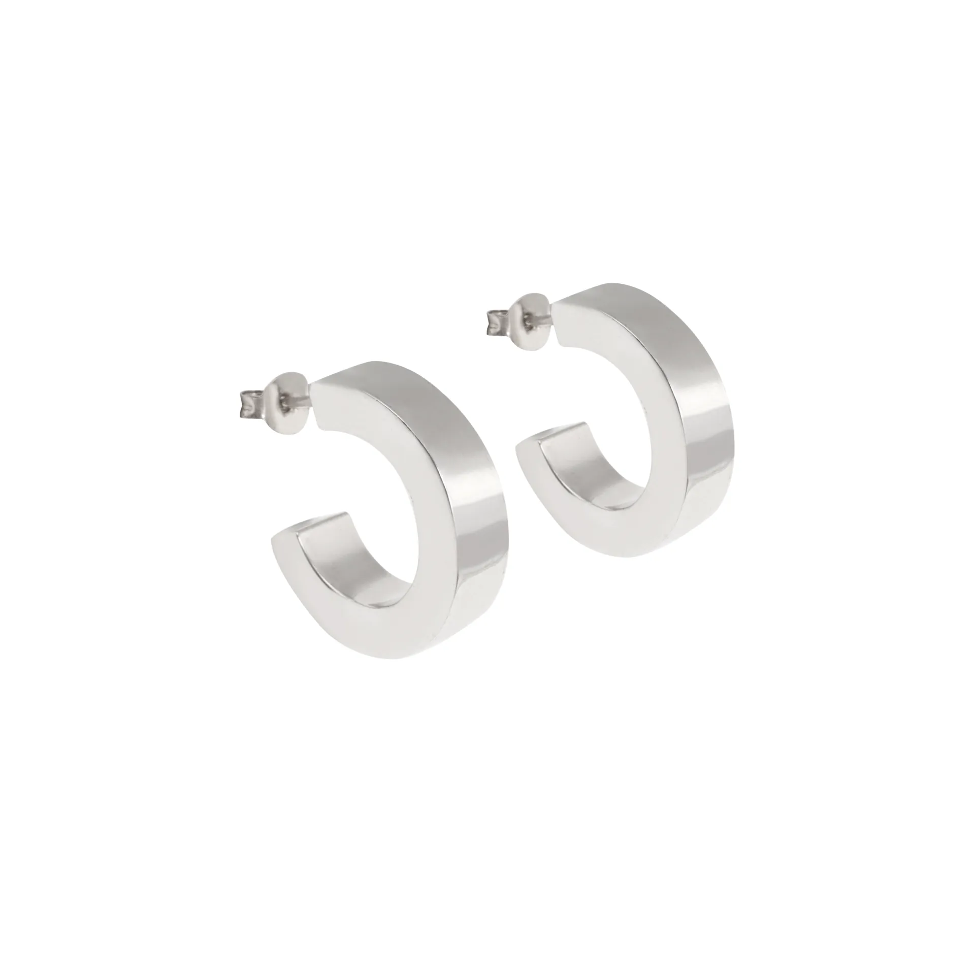 TRIBUTE, ασημένια, unisex, σκουλαρίκια, κρικάκια, καρφωτά, πάχους, 4,5χιλιοστών,