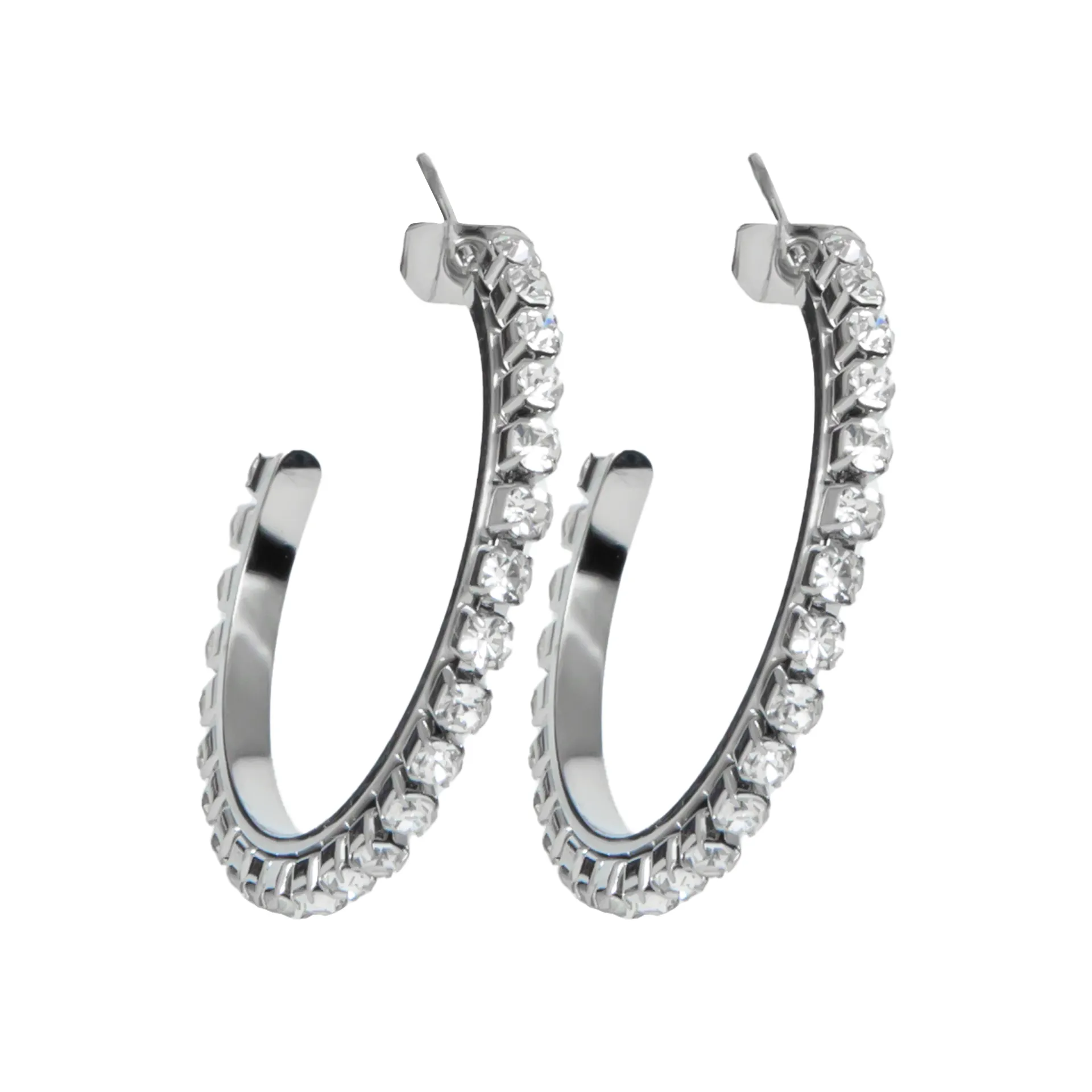 Σκουλαρίκια γυναικεία, μεσαίοι κρίκοι,3Χ3 εκατοστά, από ανοξείδωτο ατσάλι, με ζιργκόν silverline, 0130550501,
