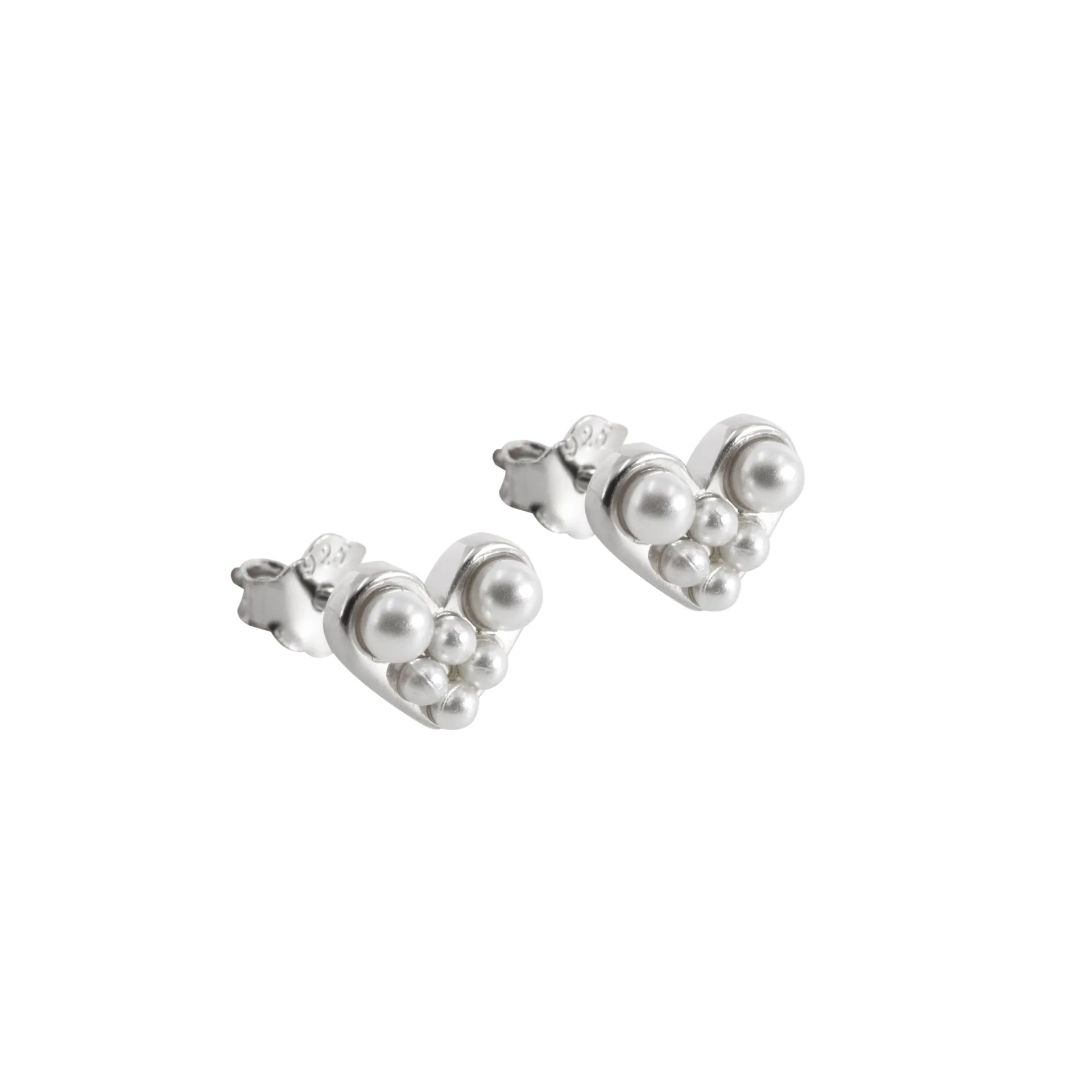 silverline, ασημένια, γυναικεία, σκουλαρίκια με καρδιά, πέρλες, άσπρο, επιπλατίνωμα,