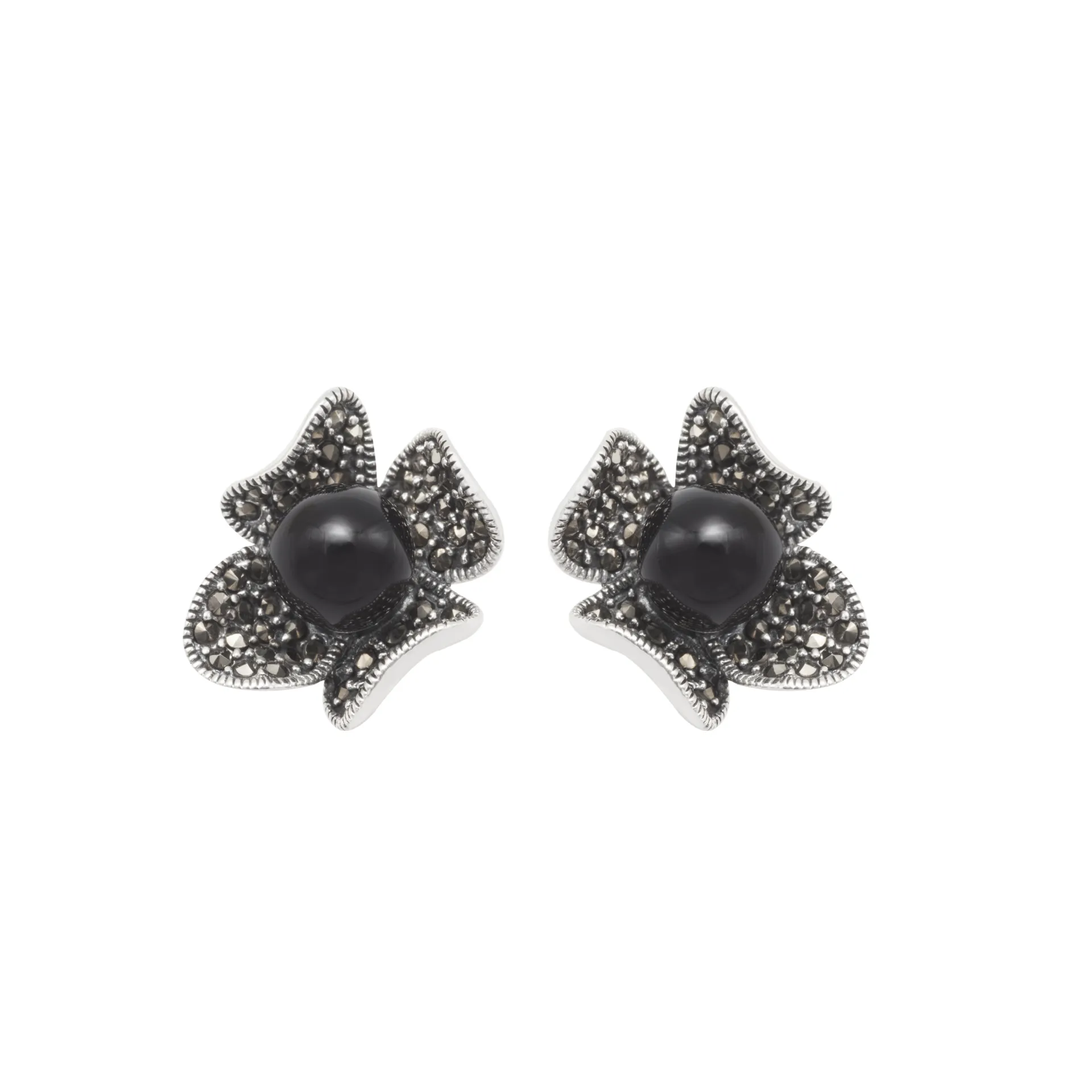 silverline, ασημένια, γυναικεία, σκουλαρίκια με μαύρο, όνυχα & ορυκτές, πέτρες, μαρκασίτη