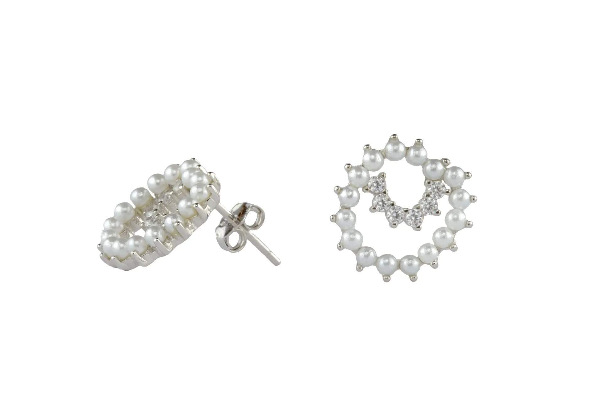 silverline, ασημένια, γυναικεία, σκουλαρίκια με μαργαριτάρια, ζιρκόν, άσπρο, επιπλατίνωμα,