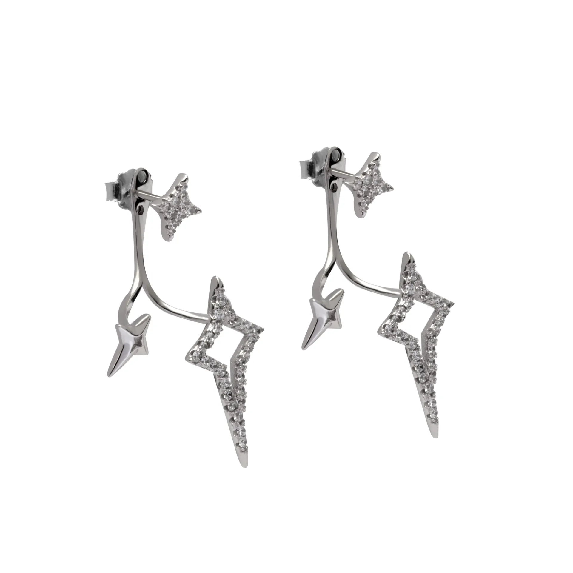 Σκουλαρίκια με σταυρούς, γυναικεία, ασημένια με ζιργκόν, silverline