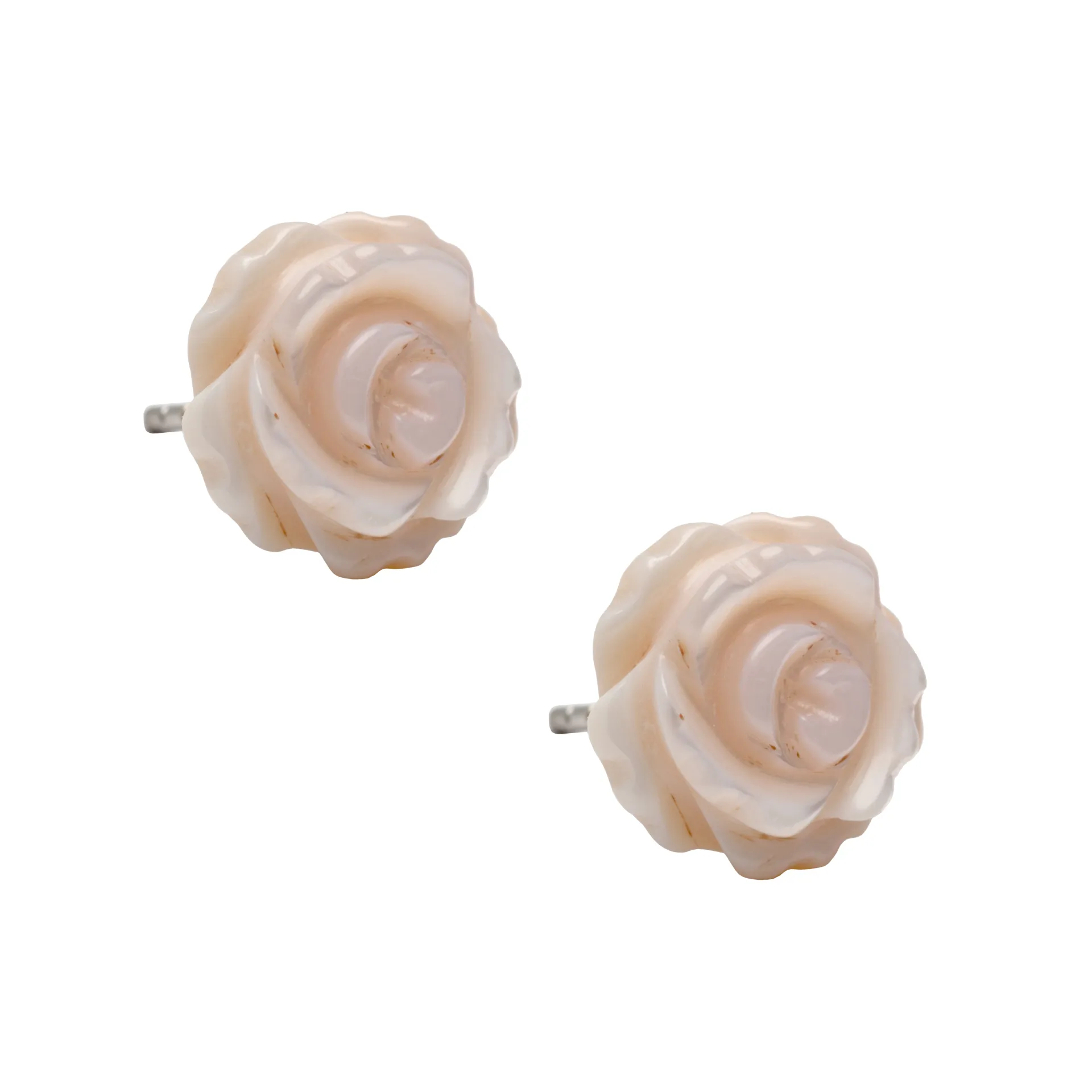 silverline, ασημένια, γυναικεία σκουλαρίκια με ροζ φίλντισι, σε σχέδιο λουλουδιού & λευκό επιπλατίνωμα.