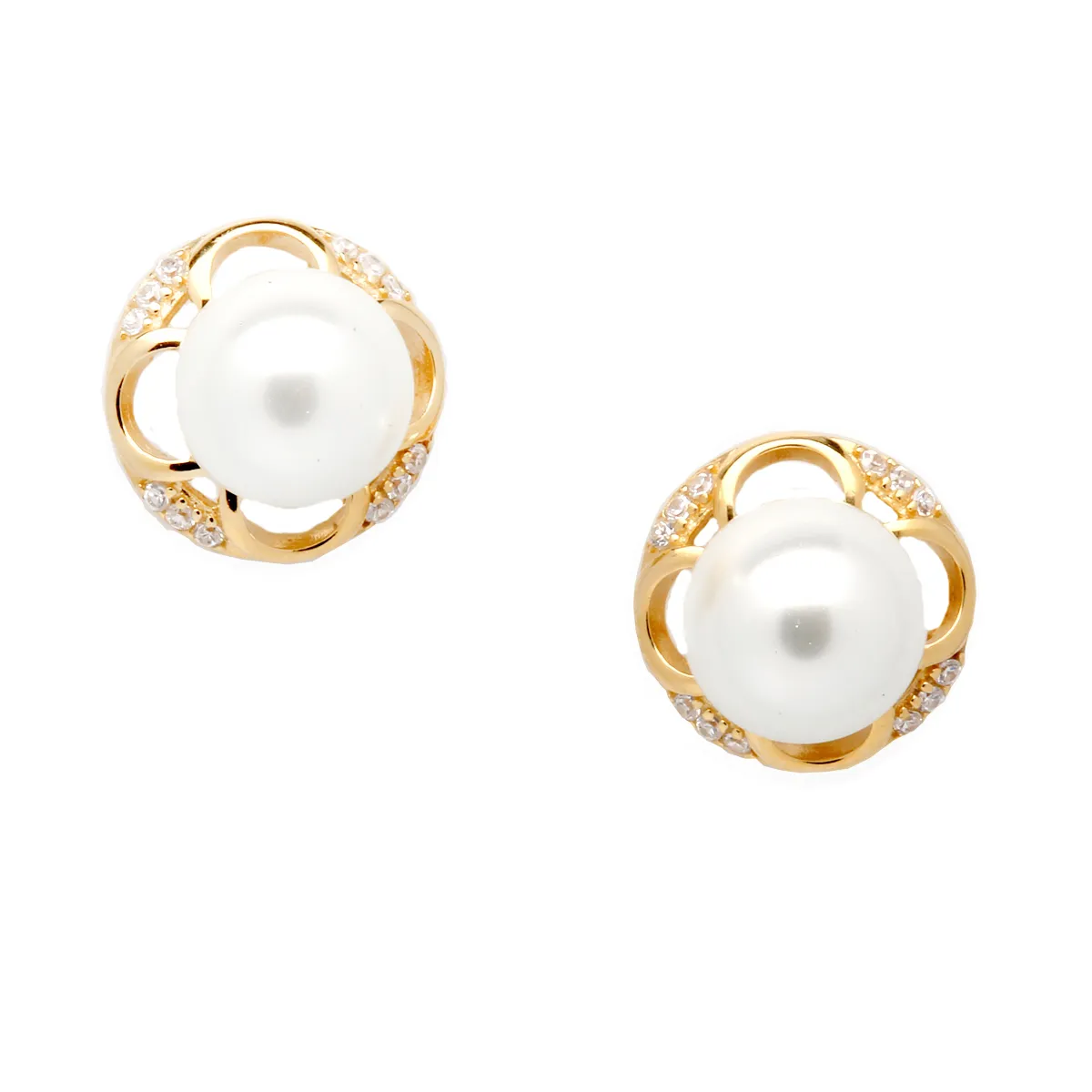 Γυναικεία σκουλαρίκια από ασήμι 925 με χρυσό επιπλατίνωμα, συνθετικό μαργαριτάρι και ζιργκόν. Χωρίς νικέλιο.
