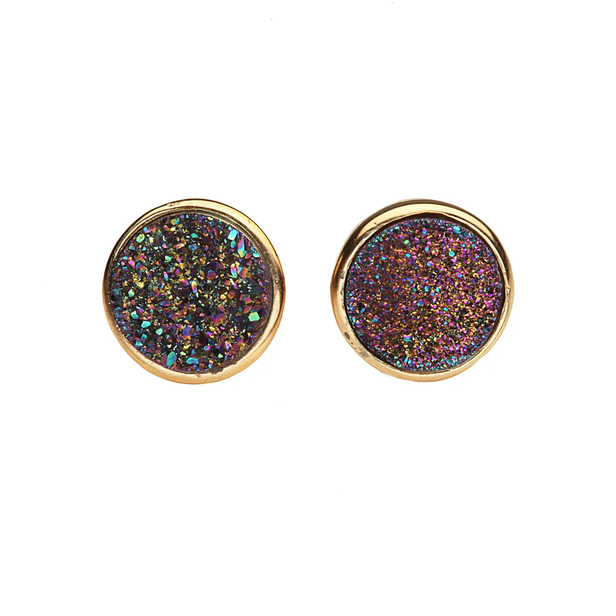 Λουστράτα γυναικεία σκουλαρίκια από ασήμι 925 με χρυσό επιπλατίνωμα και ακατέργαστο αχάτη.