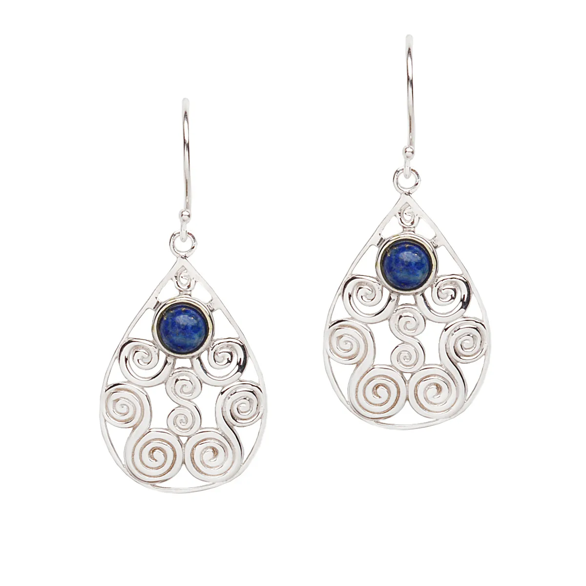 Λουστρινέ γυναικεία σκουλαρίκια από ασήμι 925 επιπλατινωμένα με πέτρα λάπις. Χωρίς νικέλιο.