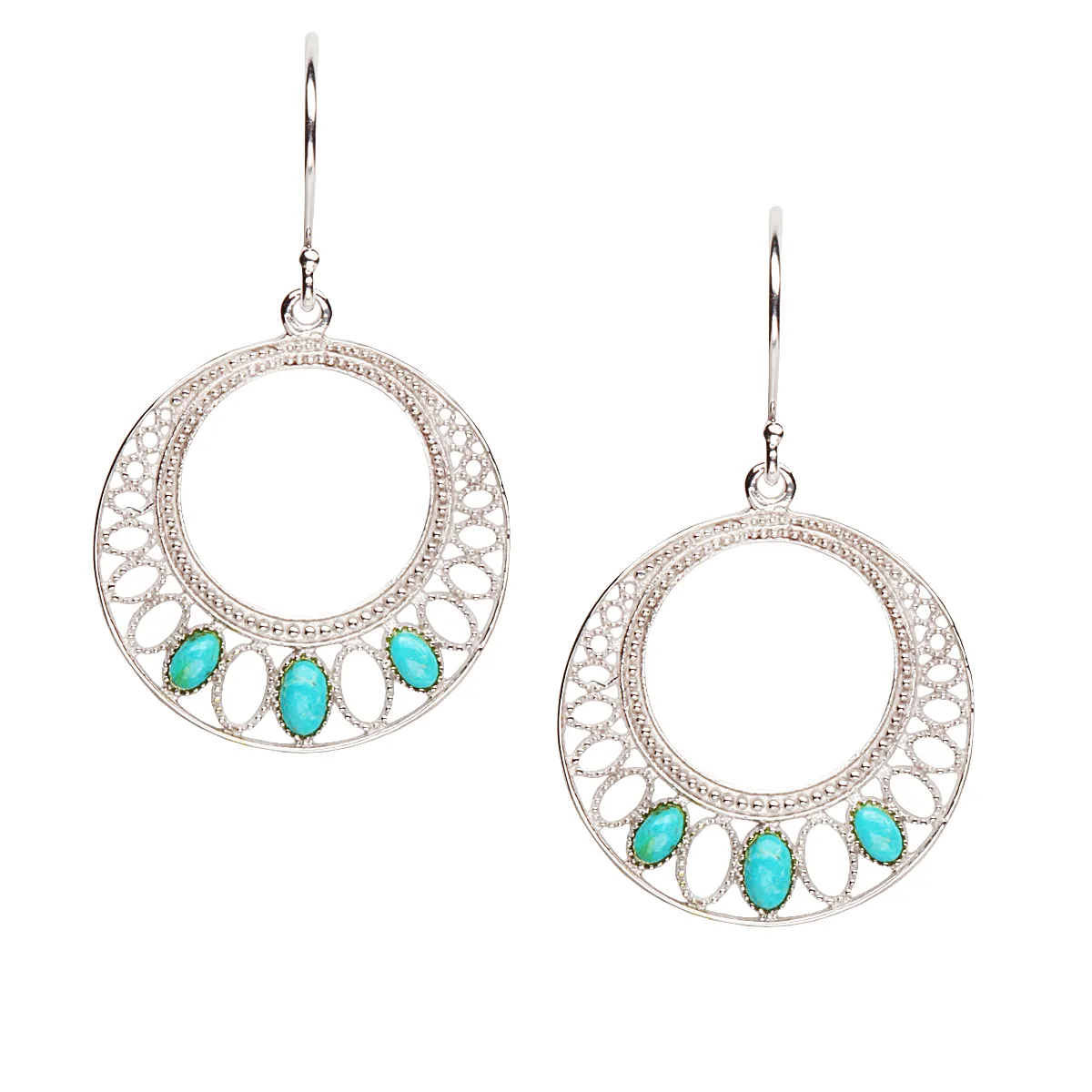 Λουστρινέ γυναικεία σκουλαρίκια από ασήμι 925 επιπλατινωμένα με πέτρα τυρκουάζ. Χωρίς νικέλιο.