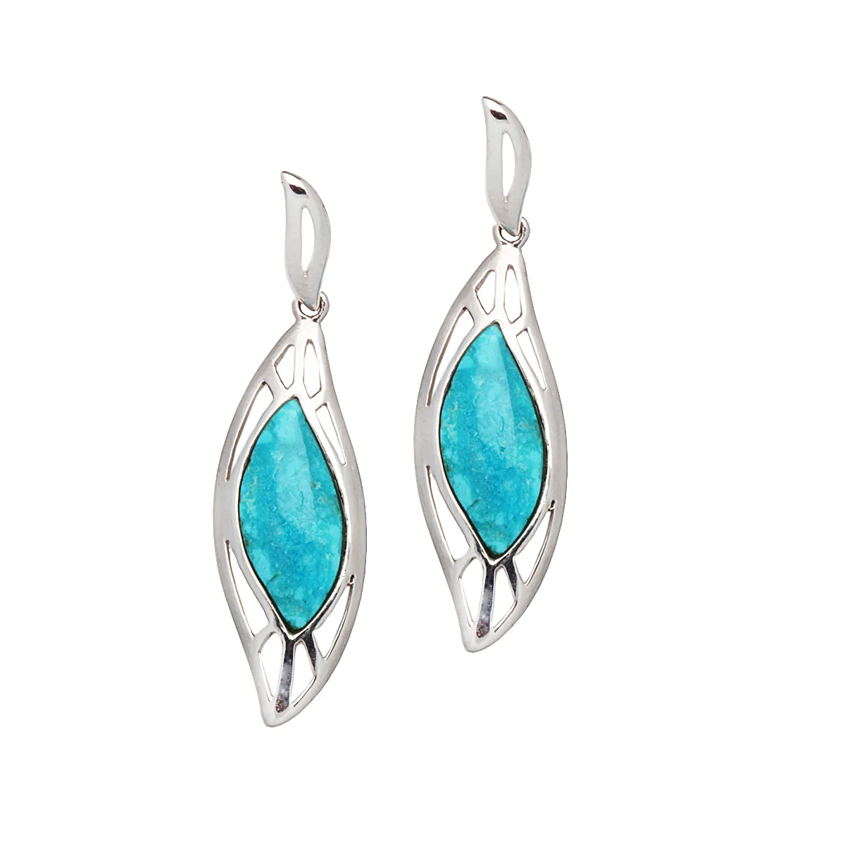Λουστράτα γυναικεία σκουλαρίκια από ασήμι 925 επιπλατινωμένο με τυρκουάζ. Χωρίς νικέλιο.