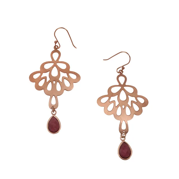 Γυναικεία σκουλαρίκια από ανοξείδωτο ατσάλι με ροζ χρυσό και ροδονίτη