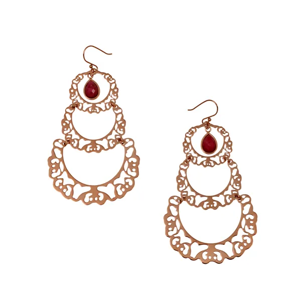 Γυναικεία σκουλαρίκια από ανοξείδωτο ατσάλι με ροζ χρυσό και ροδονίτη