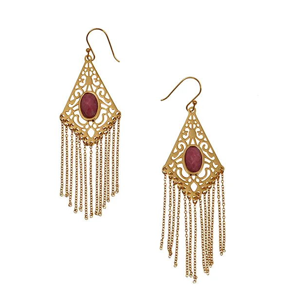 Γυναικεία σκουλαρίκια από ανοξείδωτο επιχρυσωμένο ατσάλι και ροδονίτη