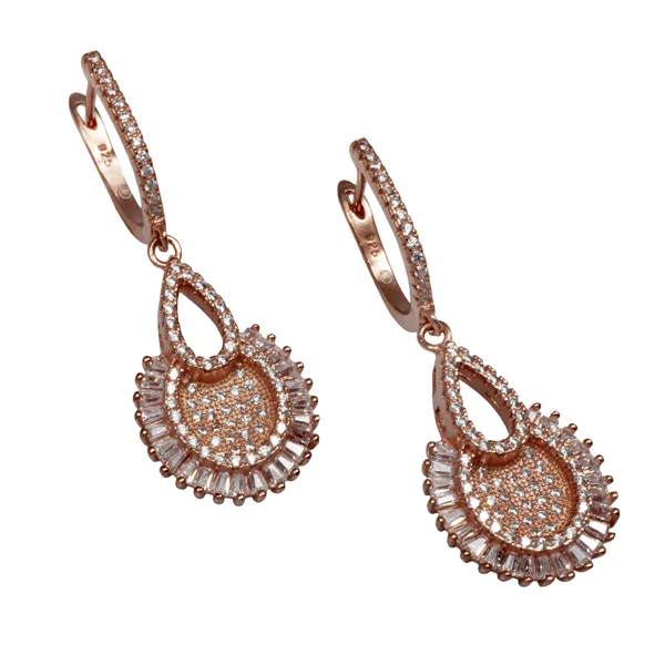 925 ασημένια γυναικεία σκουλαρίκια, με ροζ χρυσό και ζιργκόν.