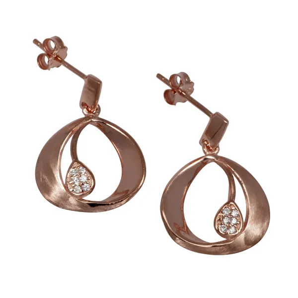 925 ασημένια γυναικεία σκουλαρίκια, με ροζ χρυσό και ζιργκόν.