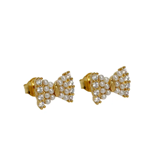 925 ασημένια γυναικεία σκουλαρίκια, επιχρυσωμένα, με ζιργκόν και μαργαριτάρια.