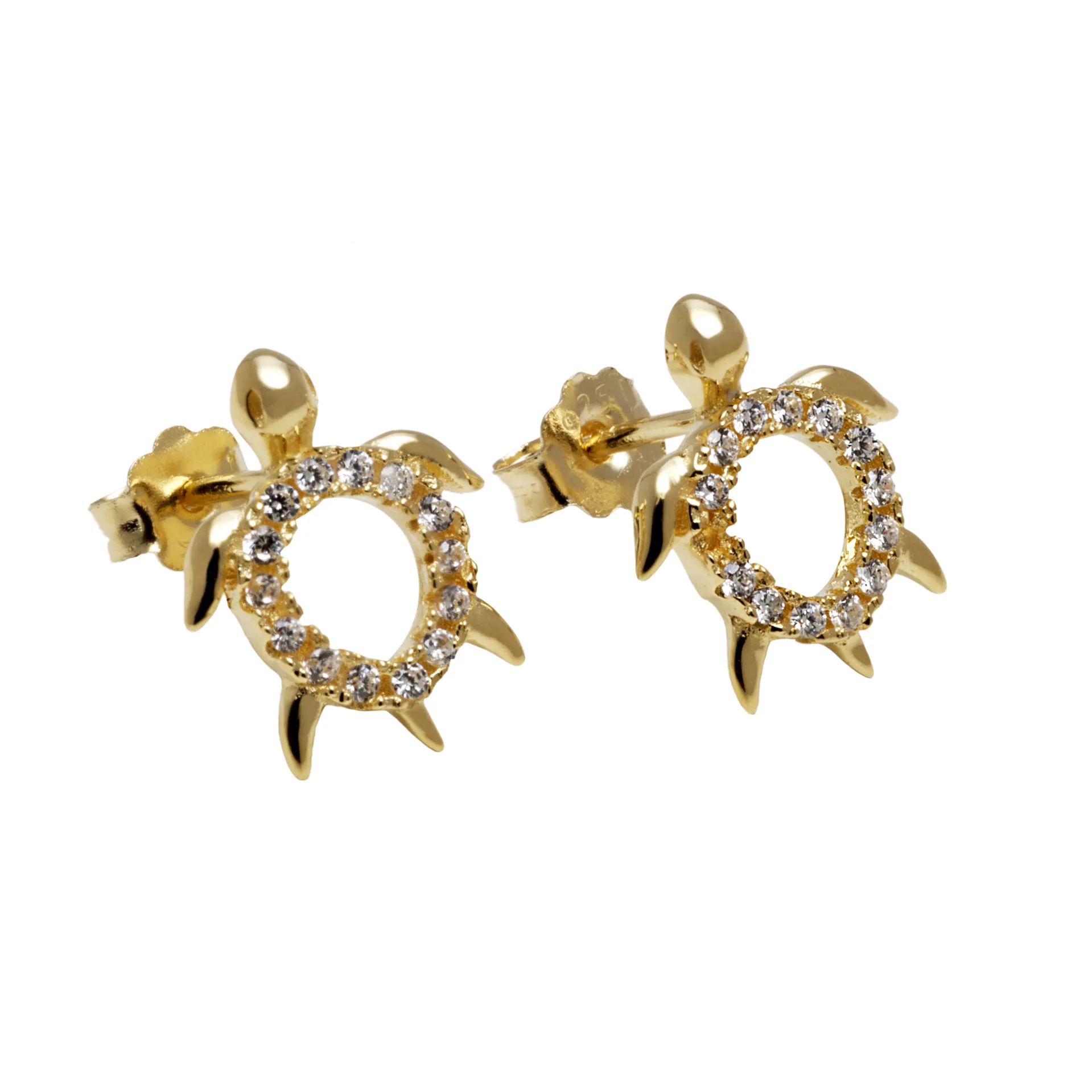 925 ασημένια γυναικεία σκουλαρίκια,χελωνα,επιχρυσωμένα, με ζιργκόν.