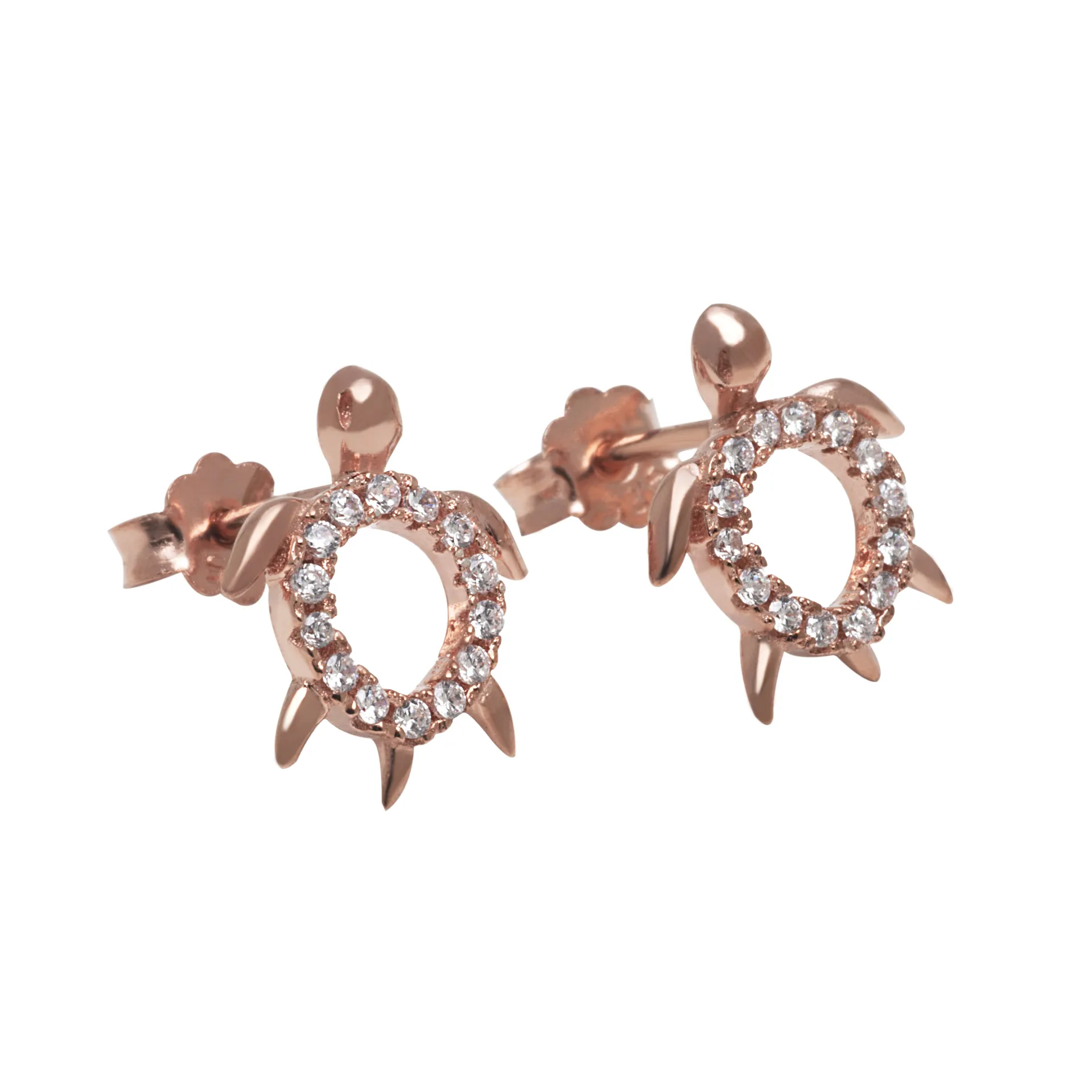 925 ασημένια γυναικεία σκουλαρίκια,χελωνα, με ροζ χρυσό και ζιργκόν.