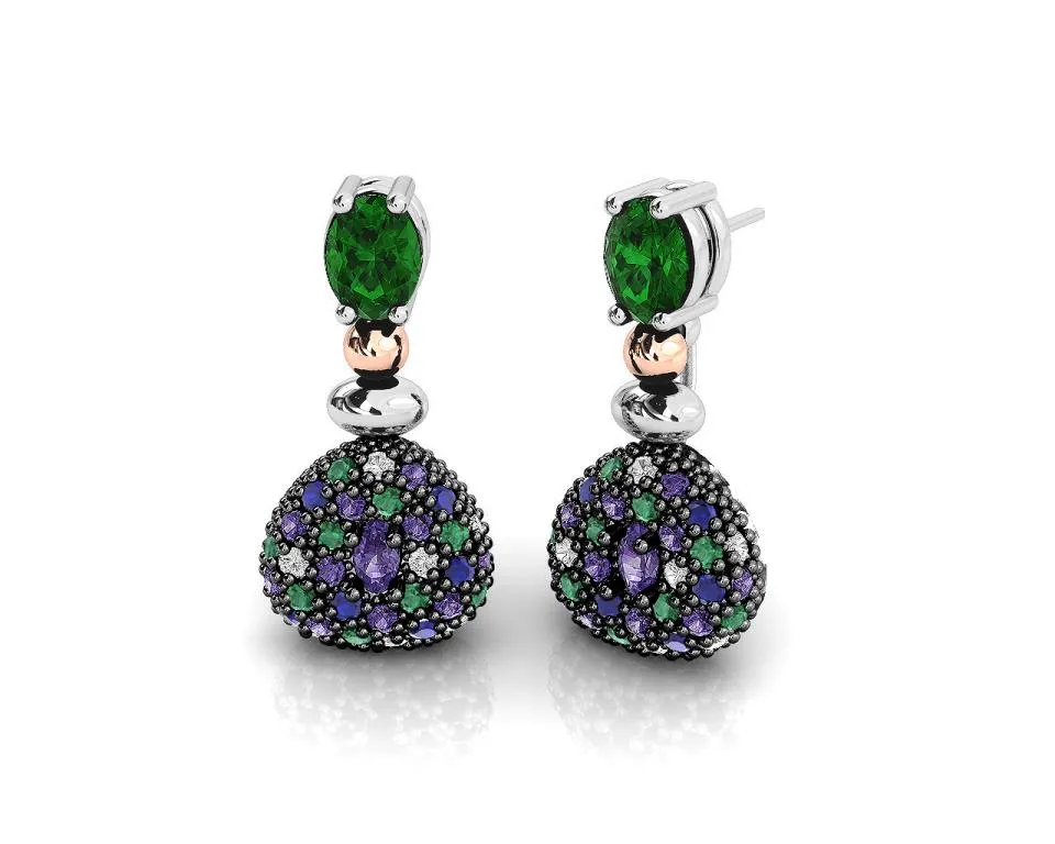silverline,ασημένια, γυναικεία, σκουλαρίκια με λευκά, πράσινα, μπλε και μωβ, ζιργκόν, φλούδα, χρυσού, Κ18 και ασπρόμαυρο, ρόδιο