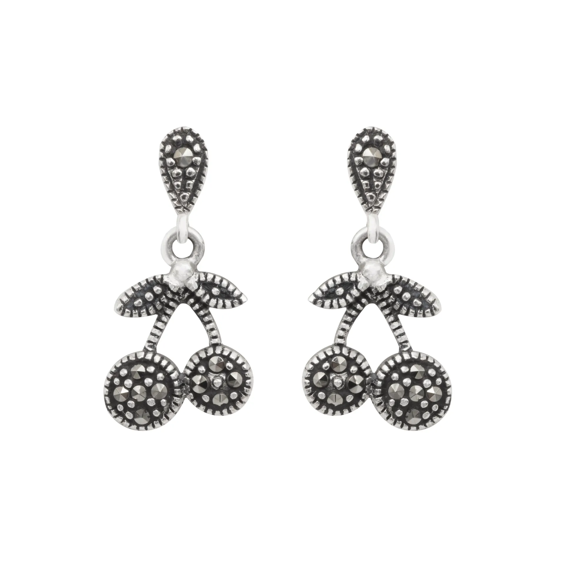 silverline, ασημένια, γυναικεία, σκουλαρίκια με κεράσια, ορυκτές, πέτρες, μαρκασίτη