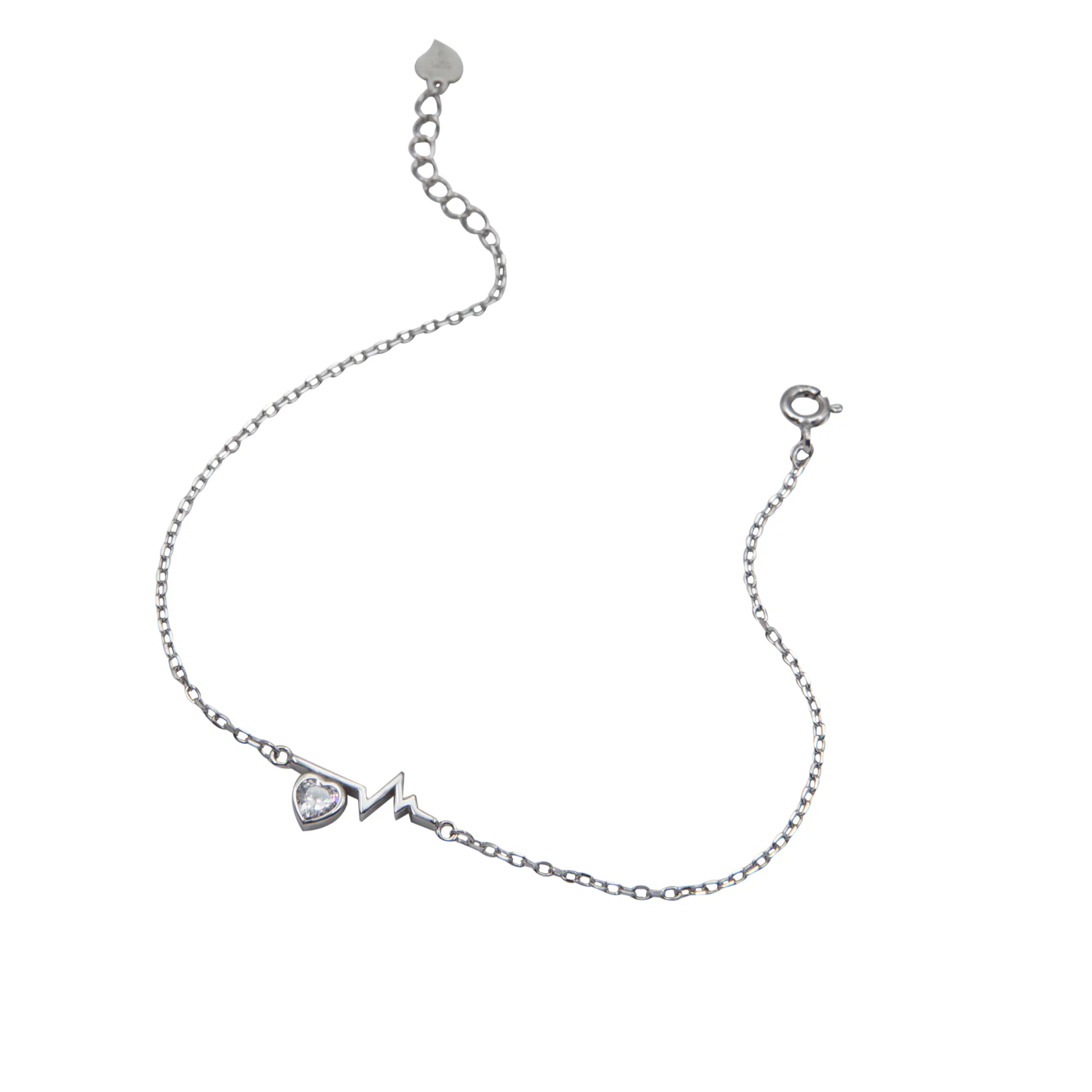silverline, ασημένιο, γυναικείο, βραχιόλι με καρδιά, ζιργκόν, άσπρο, επιπλατίνωμα, 18+2cmExt.Chain,