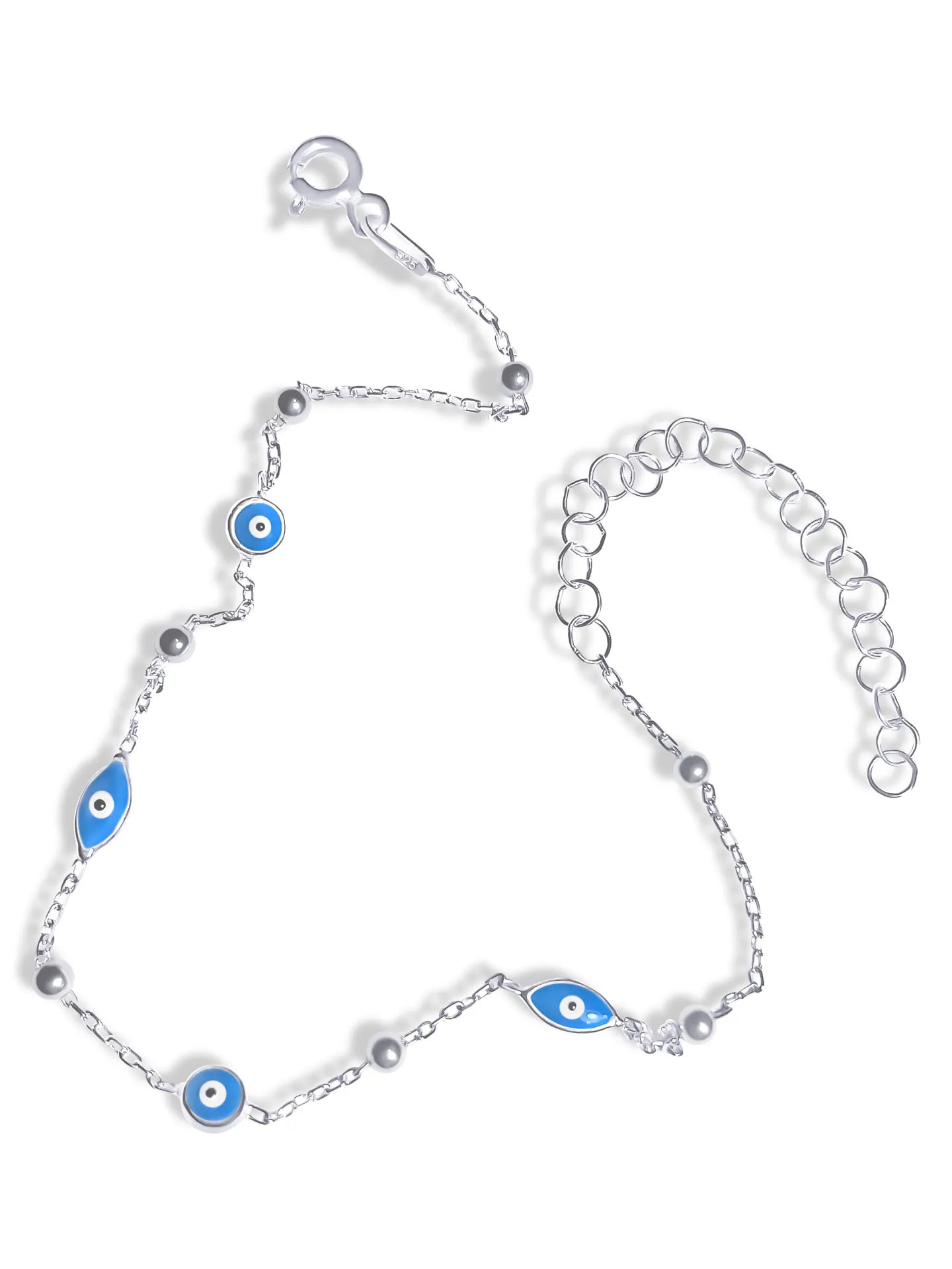 Βραχιόλι, ασημένιο, γυναικείο, με μάτια βασκανίας, σμάλτο, 18,5 εκατοστά συν 5 εκατοστά αλυσίδα προέκτασης, silverline, SBRA4,