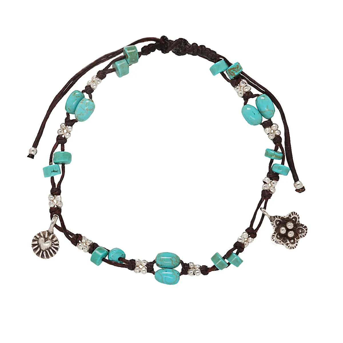 Λουστράτο βραχιόλι από οξειδωμένο ασήμι 925, με μαύρο βαμβακερό κορδόνι και τυρκουάζ πέτρες. Χωρίς νικέλιο, μεσαίου μεγέθους μήκους 18,5-19 εκ. και κούμπωμα.