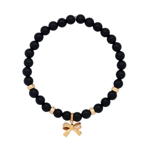 925 ασημένιο γυναικείο βραχιόλι, επιχρυσωμένο με μαύρο όνυχα και φιόγκο από ζιργκόν