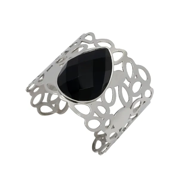 Γυναικείο βραχιόλι χειροπέδα από ανοξείδωτο ατσάλι και μαύρο όνυχα