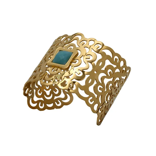 Γυναικείο βραχιόλι χειροπέδα από ανοξείδωτο επιχρυσωμένο ατσάλι και πέτρα αμαζονίτη