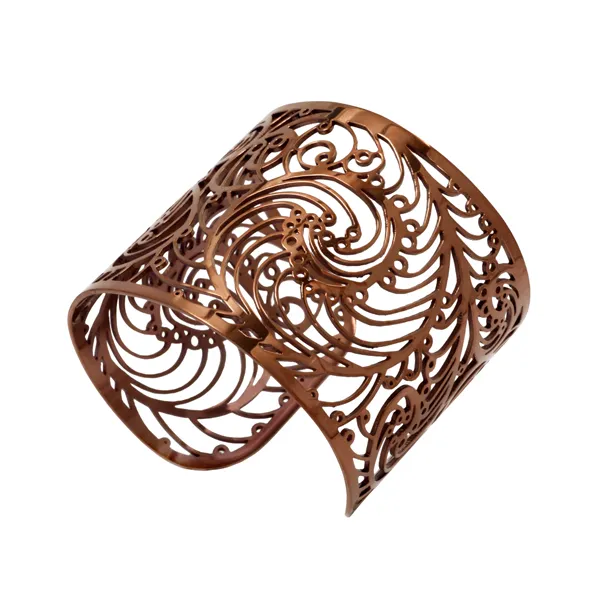 Γυναικείο βραχιόλι χειροπέδα από ανοξείδωτο ατσάλι με καφέ επιπλατίνωμα