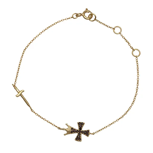 925 ασημένιο γυναικείο βραχιόλι,σταυρο, επιχρυσωμένο και μαυρα ζιργκόν.