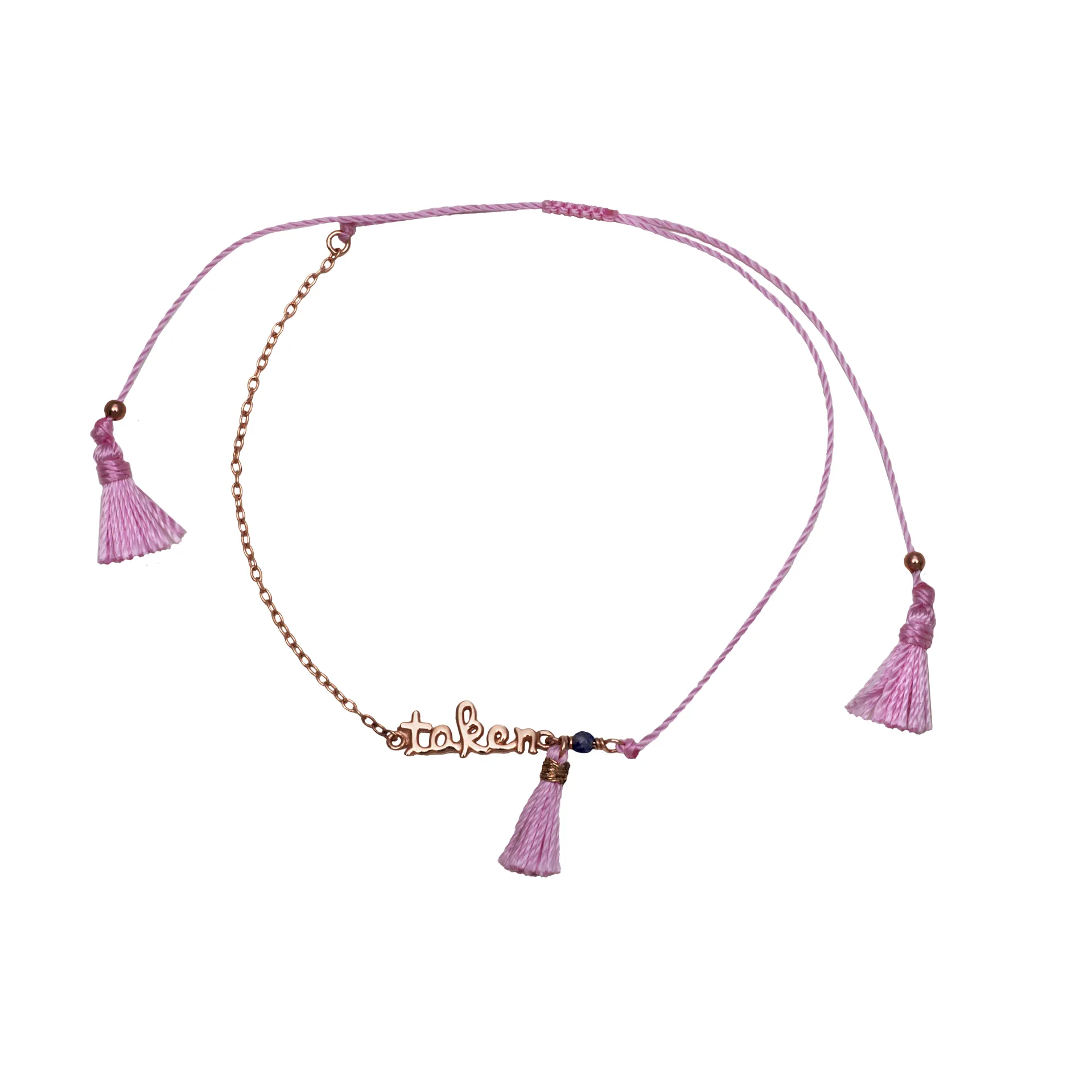 925 ασημένιο γυναικείο βραχιόλι, με ροζ χρυσό και βαμβακερό κορδόνι.