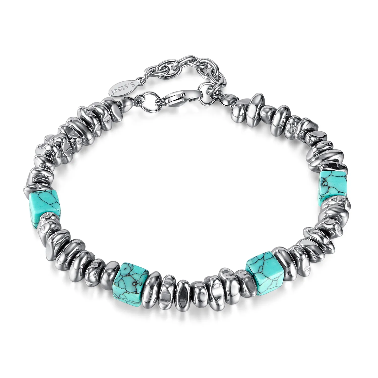 Βραχιόλι unisex από ανοξείδωτο ατσάλι, με τυρκουάζ, 22 εκατοστά, TRIBUTE, 0230451102