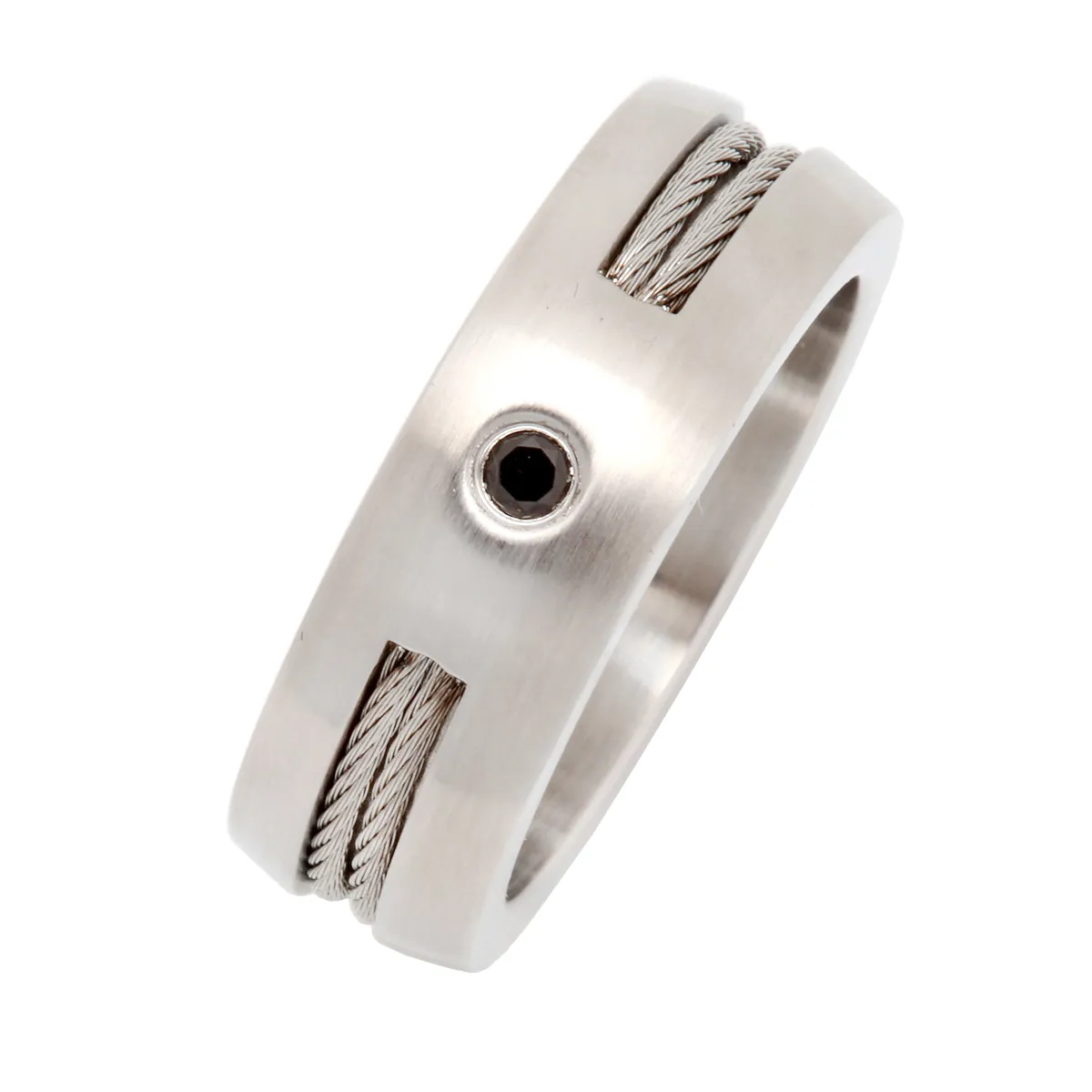 TRIBUTE, Ανδρικό δαχτυλίδι από ανοξείδωτο ατσάλι με μαύρο ζιργκόν