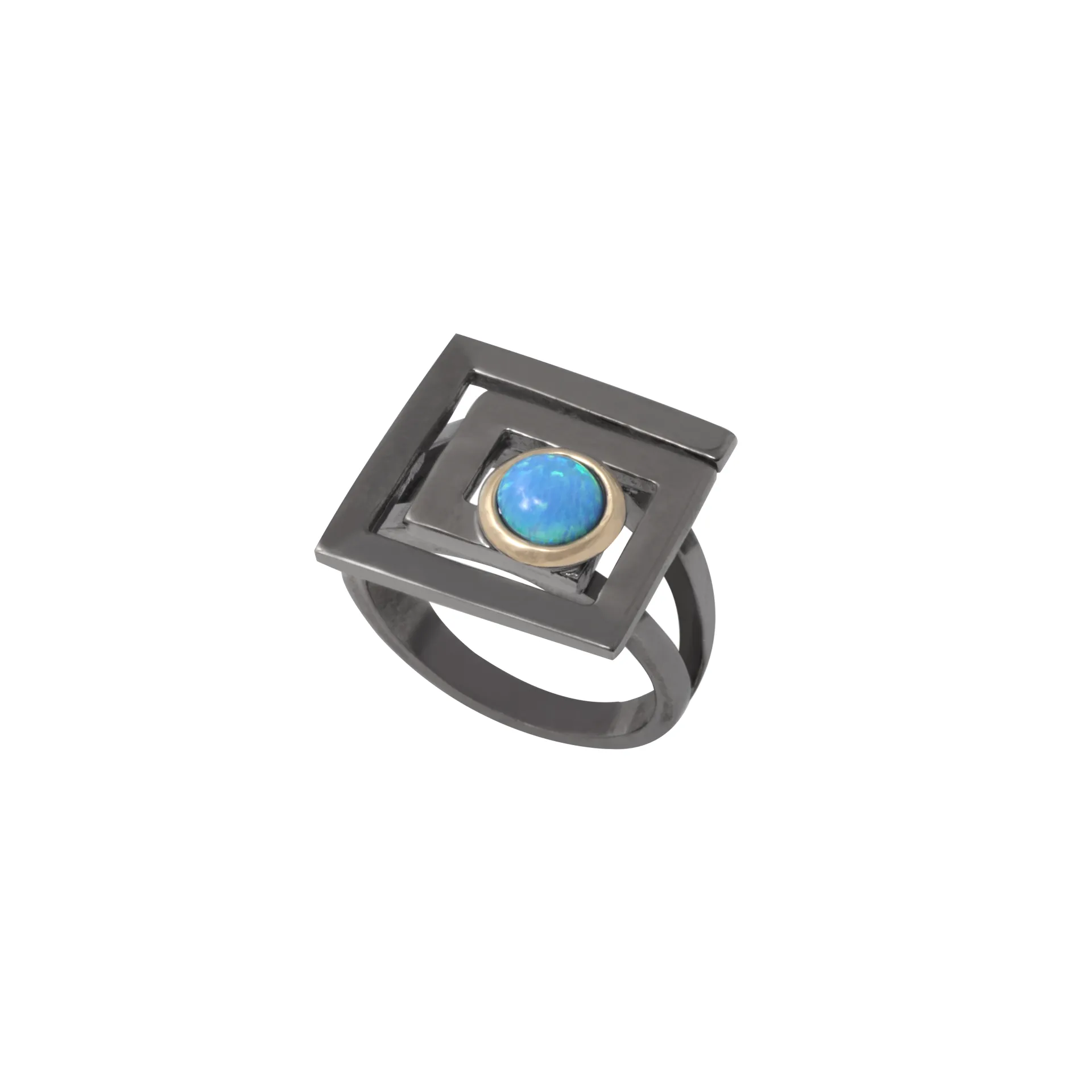 TRIBUTE, unisex, ασημόχρυσο, δαχτυλίδι με 925, ασήμι, Κ14, χρυσό και μπλέ, οπάλιο με μαύρο, ρόδιο,