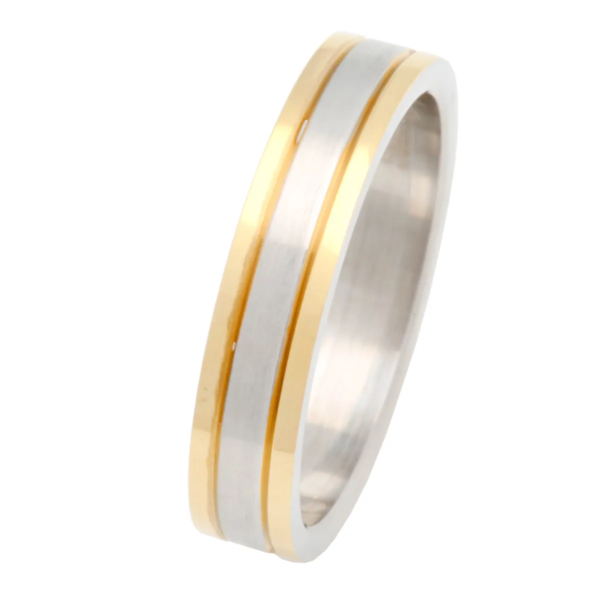 Ανδρικό δαχτυλίδι από ανοξείδωτο ατσάλι με δυο επιπλατινώματα: λευκό και χρυσό.